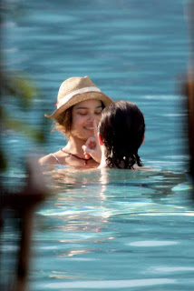 Staring into each other eyes, the couple appeared smitten struggling to keep their hands off each other as they went for a dip to cool down.